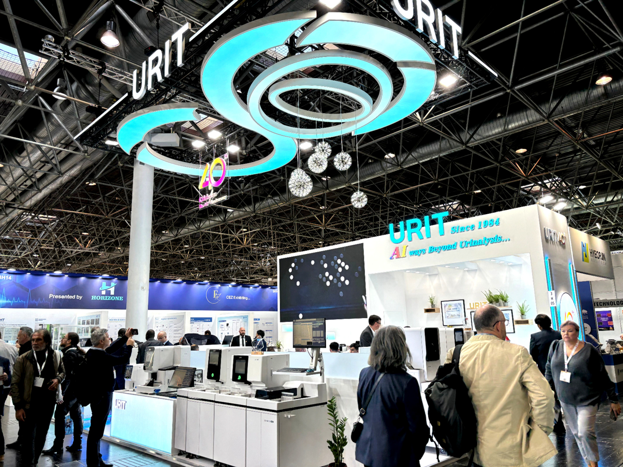 Two "U" shaped elements were cleverly integrated into this circular structure, breaking the monotonous layout of traditional booths and providing a new visual experience. This unique circular design not only showcases the company's innovative spirit but also implies that URIT will have infinite possibilities and vitality in its future development.